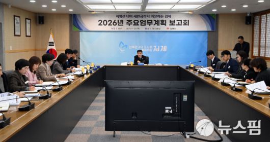 김제시는 지난 14~15일 이틀간 정성주 시장 주재로 '2026년 주요업무계획 보고회'를 열고, 민선 8기 4년 차를 맞아 중장기 미래 신성장동력 확보를 위한 전략사업 추진 방향을 집중 점검했다.