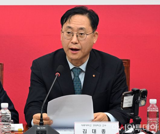 아시아투데이 송의주 기자 = 15일 국회에서 열린 국민의힘 민생경제 점검회의 1차 회의에서 김대종 세종대 교수가 발표를 하고 있다.
