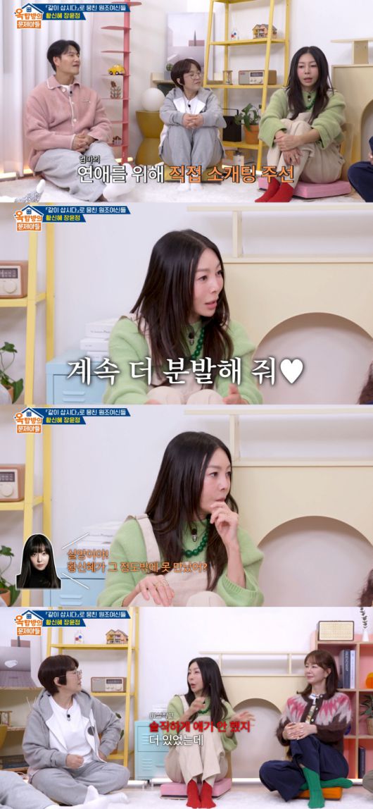 황신혜는 "딸이 '엄마 아직 너무 예쁘고 젊은데 남자 친구 만나'라고 한다. 나가서도 소개팅 시켜주려고 애쓰고 다니더라. (엄마 남자 친구를) 수소문하더라"며 "고맙다. 계속 알아봐 줬으면 좋겠다"고 말했다.