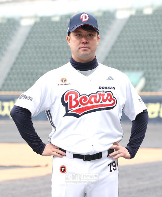 [스포티비뉴스=잠실, 곽혜미 기자] 2026 두산 창단기념식이 15일 오전 서울 송파구 잠실야구장에서 열렸다. 두산 손지환 코치가 기념 촬영을 하고 있다. <저작권자 ⓒ SPOTV NEWS. 무단전재 및 재배포 금지>