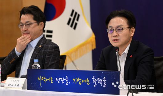 산업통상부 산업부문 공공기관 업무보고가 12일 서울 중구 대한상공회의소에서 열렸다. 김정관 산업통상부 장관이 모두발언을 하고 있다. 김민수기자 mskim@etnews.com |