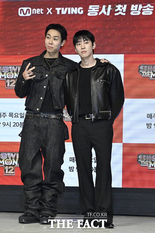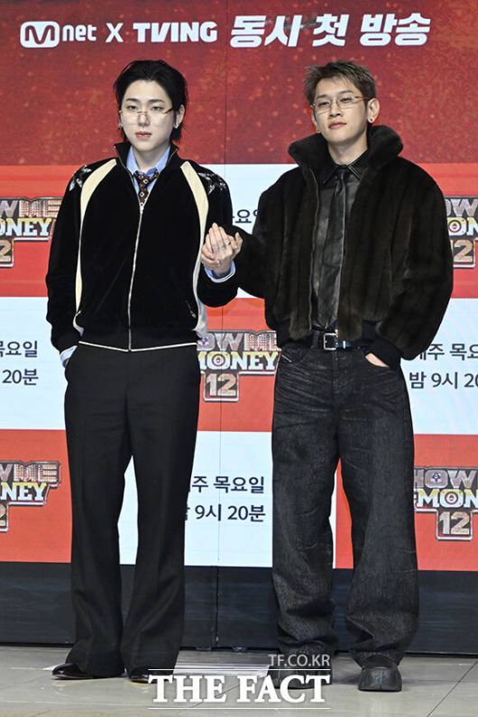 [더팩트 | 송호영 기자] 가수 릴 모쉬핏(Lil Moshpit)과 박재범, 로꼬, 그레이, 지코, 크러쉬, 프로듀서 허키 시바세키, 제이통(왼쪽부터)가 15일 오전 서울 강남구 논현로 엘리에나호텔 그랜드볼룸에서 열린 Mnet 새 힙합 오디션 예능프로그램 '쇼미더머니12' 제작발표회에 참석해 포즈를 취하고 있다.