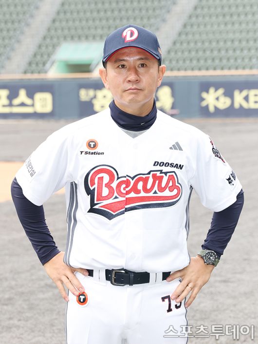 [스포츠투데이 권광일 기자] 두산 손시헌 코치가 15일 서울 잠실야구장에서 열린 두산 베어스 창단 기념식 및 시무식 행사를 마치고 기념촬영을 하고 있다. 2026.01.15. [스포츠투데이 권광일 기자 sports@stoo.com]