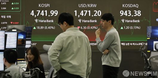 [서울=뉴스핌] 양윤모 기자 = 15일 오후 코스피가 전장 종가보다 18.89 포인트(0.40%) 상승하며 4741.99로, 코스닥은 1.20 포인트(0.13%) 상승한 943.38로 거래되는 가운데, 서울 중구 하나은행 딜링룸에서 직원들이 업무를 보고 있다. 서울외환시장에서 달러/원 환율은 전장 대비 6.30원 하락한 1471.20원에 거래되고 있다. 2026.01.15 yym58@newspim.com