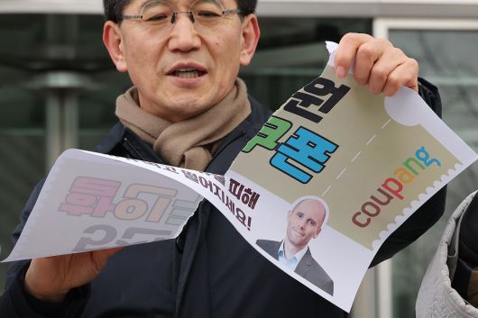 135개 시민·사회단체로 구성된 ‘안전한 쿠팡 만들기 공동행동’은 이날 오전 서울 송파구 쿠팡 본사 앞에서 기자회견을 열고 이같이 밝혔다. 이들은 김범석 쿠팡Inc 의장과 해럴드 로저스 쿠팡 한국 임시 대표의 사진과 함께 ‘5000원 할인 쿠폰’이라고 적힌 종이를 찢는 퍼포먼스도 했다.