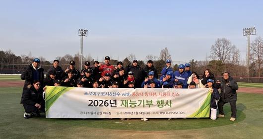 스포츠에이전시 HSB코퍼레이션의 삼성 투수 이재익, 키움 내야수 오선진과 박정음 주루코치, NC 전민수 타격코치, 한화 박윤철 전력분석원은 14일 서울대공원 야구장에서 열린 재능기부 행사에 동참했다.