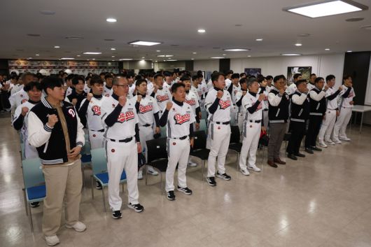두산이 15일 서울 잠실구장에서 창단기념식을 열었다. 고영섭 대표이사와 김원형 감독을 비롯한 코치진, 선수단이 자리했다. 이들은 새롭게 맞이한 2026년 변화를 다짐했다.