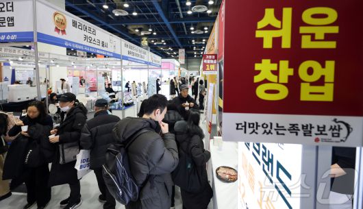 (서울=뉴스1) 김진환 기자 = 15일 서울 강남구 코엑스에서 열린 ‘제82회 프랜차이즈 창업 박람회 2026’을 찾은 방문객들이 부스를 둘러보고 있다. 2026.1.15/뉴스1kwangshinQQ@news1.krCopyright ⓒ 뉴스1. All rights reserved. 무단 전재 및 재배포, AI학습 이용 금지.