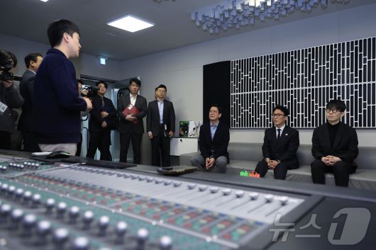 (서울=뉴스1) 박정호 기자 = 김민석 국무총리가 15일 오전 경기도 성남시 분당 넥슨 사옥을 방문해 미디어실 사운드디자인팀의 특수효과 제작 현장을 살펴보고 있다. 2026.1.15/뉴스1pjh2035@news1.krCopyright ⓒ 뉴스1. All rights reserved. 무단 전재 및 재배포, AI학습 이용 금지.