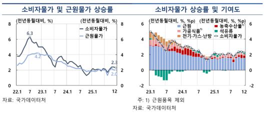 물가는 국제유가 안정세 등으로 점차 2.0% 목표 수준으로 낮아질 것으로 예상했다. 올해 소비자물가와 근원물가 상승률도 각각 2.1%, 2.0% 전망에 대체로 부합할 것으로 내다봤다.