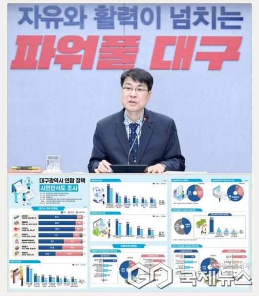 (대구=국제뉴스) 백운용 기자 = 대구광역시는 "지난해 말 시정 전반에 대한 '시민인식도 조사'를 실시했는 데 교통(87.6%)·생활환경(81.8%)·거주여건(79.5%) 등 생활 인프라 만족도가 높으며 대형마트 의무휴업일 변경·신천 수변공원화 사업을 긍정 평가했디"고 말했다.