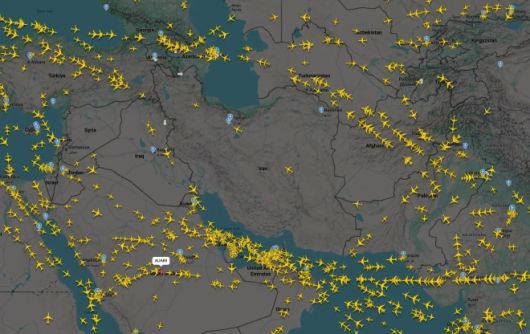 전운이 감돌고 있는 이란이 자국 영공을 일시적으로 폐쇄한다고 발표하자 항공기들이 순식간에 사라졌다. 지난 14일(현지시간) 이란 당국은 사전에 허가받은 국제선을 제외한 모든 항공편에 대해 영공을 일시적으로 폐쇄한다는 항공정보공보(NOTAM)를 발령했다. 이번 조치는 약 2시간 남짓 유효한 것으로 공지됐으나 세계 각국의 항공기들은 순식간에 자취를 감췄다.