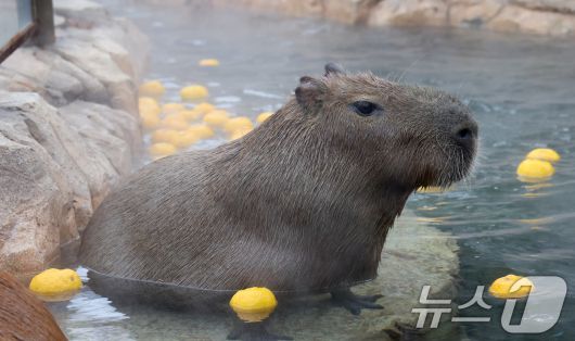 (용인=뉴스1) 김영운 기자 = 15일 경기 용인시 처인구 에버랜드에서 카피바라들이 김이 모락모락 피어오르는 온천에 몸을 담근 채 따뜻하게 온천욕을 즐기며 겨울을 나고 있다. 2026.1.15/뉴스1