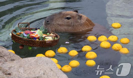 (용인=뉴스1) 김영운 기자 = 15일 경기 용인시 처인구 에버랜드에서 카피바라들이 김이 모락모락 피어오르는 온천에 몸을 담근 채 따뜻하게 온천욕을 즐기며 겨울을 나고 있다. 2026.1.15/뉴스1