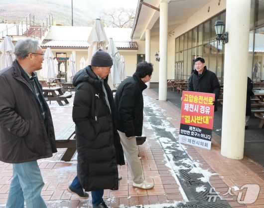 박영기 제천시의회 의장도 같은 날 5차 회의장 입구에서 피켓을 들고 제천의 송전선로 재검토와 철회를 강조했다.