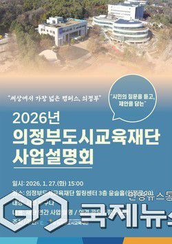 [이운안 기자] (의정부=국제뉴스) 이운안 기자 = 의정부도시교육재단은 오는 1월 27일 재단의 연간 사업 방향을 시민들과 공유하고 의견을 나누기 위한 '2026년 의정부도시교육재단 사업설명회'를 개최한다.