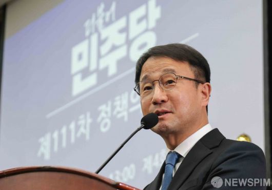 [서울=뉴스핌] 윤창빈 기자 = 한병도 더불어민주당 원내대표가 15일 서울 여의도 국회에서 열린 의원총회에서 모두발언을 하고 있다. 2026.01.15 pangbin@newspim.com