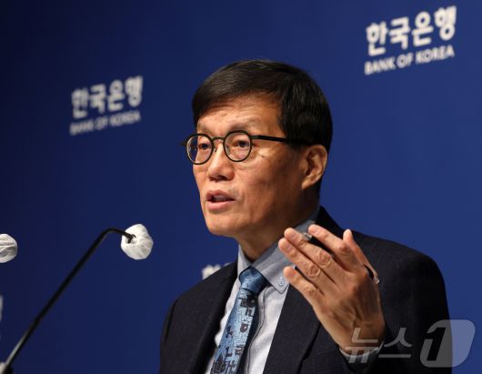 (서울=뉴스1) 김진환 기자 = 이창용 한국은행 총재가 15일 서울 중구 한국은행에서 열린 금융통화위원회 금리 결정에 대한 기자간담회에서 발언하고 있다. (공동취재) 2026.1.15/뉴스1