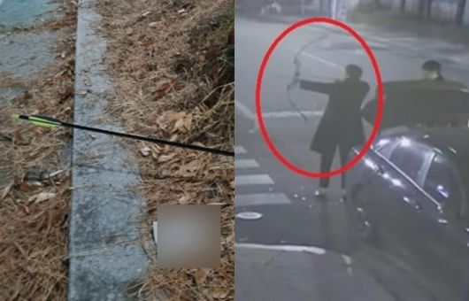 경찰은 CCTV 영상을 통해 A씨가 B씨와 약 70m 떨어진 도로변 주차 차량 트렁크에서 화살을 쏘는 장면을 포착했다.