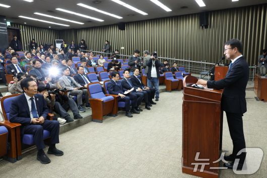 (서울=뉴스1) 신웅수 기자 = 한병도 더불어민주당 원내대표가 15일 서울 여의도 국회에서 열린 의원총회에서 발언하고 있다. 2026.1.15/뉴스1phonalist@news1.krCopyright ⓒ 뉴스1. All rights reserved. 무단 전재 및 재배포, AI학습 이용 금지.