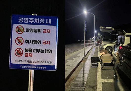 야영·취사가 금지된 울산 주전 몽돌해변 공영주차장에서 누군가 캠핑을 즐기는 모습이 포착돼 논란이 일고 있습니다.