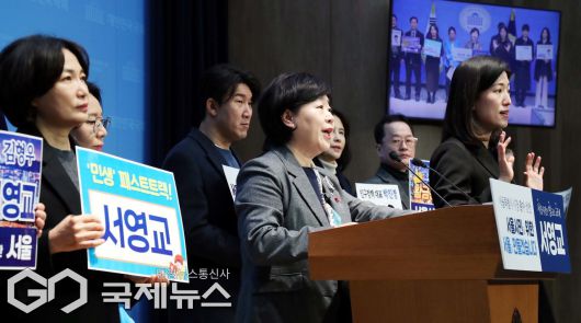 (서울=국제뉴스) 서영교 더불어민주당 의원이 15일 서울 여의도 국회 소통관에서 서울시장 출마 선언을 하고 있다./사진=이용우 기자