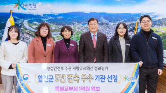 경남 합천군은 행정안전부가 주관하는 '2025년 지방규제혁신 추진 성과평가'에서 우수기관으로 선정 특별교부세 1억 원 확보하는 쾌거를 달성했다고 15일 밝혔다.