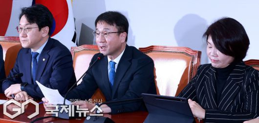 (서울=국제뉴스) 한병도 더불어민주당 원내대표가 15일 서울 여의도 국회에서 열린 정책조정회의에서 모두 발언을 하고 있다./사진=이용우 기자