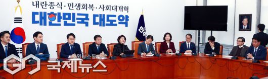 (서울=국제뉴스) 한병도 더불어민주당 원내대표가 15일 서울 여의도 국회에서 열린 정책조정회의에서 모두 발언을 하고 있다./사진=이용우 기자