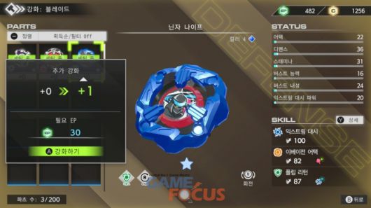 아무래도 상위 층으로 갈수록 상대 베이블레이드의 능력치가 기하급수적으로 오르는 만큼 베이블레이드의 강화는 무조건 필요했다.
