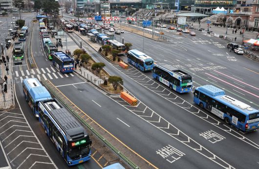 서울 시내버스 노사 간 임금 협상 합의와 파업이 철회된 15일 서울역 버스환승센터에 시내 버스가 오가고 있다. 2026.1.15/뉴스1 |
