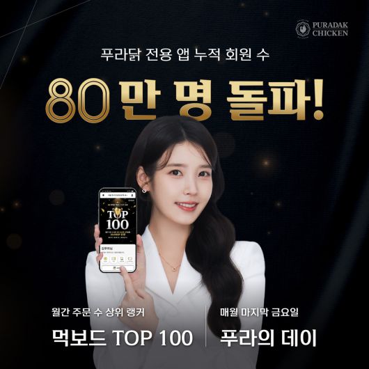 오븐-후라이드 치킨 전문 브랜드 푸라닭 치킨(대표이사 장성식)이 전용 앱 누적 가입자 수 80만 명을 돌파했다고 15일 밝혔다.