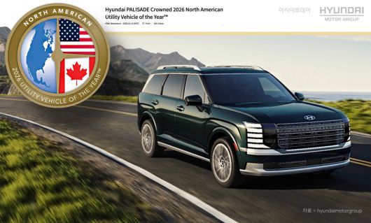 15일 현대차는 미국 디트로이트에서 열린 2026 북미 올해의 차 시상식에서 팰리세이드가 유틸리티 부문 '북미 올해의 차'로 선정됐다고 밝혔다. 이로써 현대차그룹은 북미 올해의 차를 통산 9차례 수상하며, 북미 시장에서의 상품성과 기술 경쟁력을 다시 한번 입증했다.