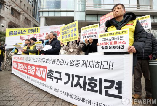 금감원 앞 MBK파트너스 중징계 촉구 기자회견