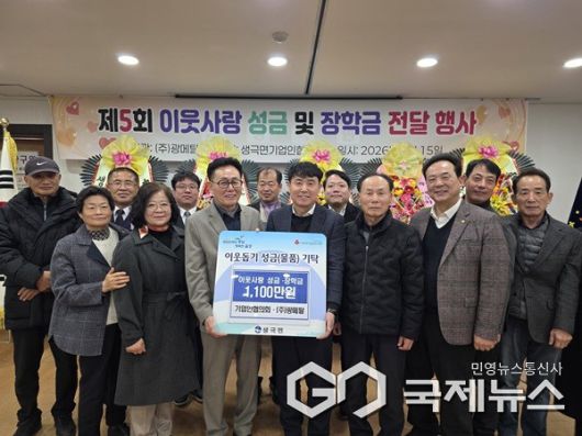 김재만 생극면장은 "경기 여건이 쉽지 않은 상황에서도 5년째 한 해도 거르지 않고 이웃사랑 성금과 장학금을 기탁해 온 ㈜광메탈과 생극면 기업인협의회에 감사드린다"며 "앞으로 기업과 지역이 함께 상생·발전할 수 있도록 행정적인 지원을 아끼지 않겠다"고 말했다.