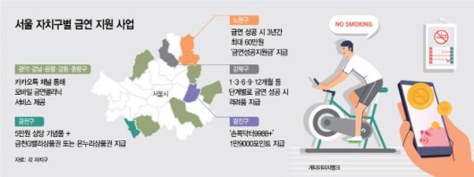각 자치구는 금연을 결심한 주민들의 의지가 '작심삼일'로 끝나지 않도록 인센티브 방식 등 지원책을 강화하고 있다.