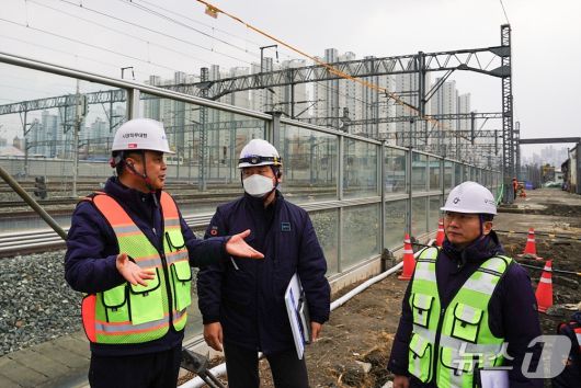 (대전=뉴스1) 박찬수 기자 = 한국철도공사(코레일)가 15일 오전 경부선 열차 운행선 인접 공사현장을 점검했다.