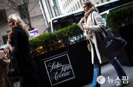 2023년 12월 5일, 미국 뉴욕 맨해튼에 위치한 삭스 피프스 애비뉴(Saks Fifth Avenue) 플래그십 스토어 밖에서 연말 쇼핑객들이 걸어가고 있다. [사진=로이터 뉴스핌] |