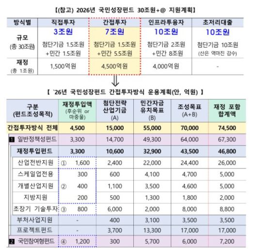 이번 공고는 1차 메가 프로젝트와는 별도로 간접투자를 위한 것으로, 재정과 첨단전략산업기금 민간자금이 공동으로 대규모 펀드를 조성해 정책목적에 맞는 지분투자를 수행하는 방식으로 진행된다.