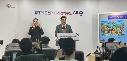 (세종=국제뉴스) 김태수 기자 = 세종시 문화체육관광국은 15일 2026년 주요업무계획 브리핑을 통해 한글문화 중심도시 위상을 강화하고 문화·체육·관광이 어우러진 도시 경쟁력을 높이겠다고 밝혔다.