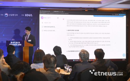 NU-GPT 출시 및 원전수출업계 교류회가 산업통상부 주최로 15일 서울 중구 롯데호텔에서 열렸다. 이덕형 한국원전수출산업협회 차장이 NU-GPT를 시연하고 있다. 박지호기자 jihopress@etnews.com [Copyright © 전자신문. 무단전재-재배포금지]