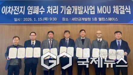 새만금개발청(청장 김의겸)은 15일 새만금에서 '이차전지 염폐수 처리 기술연구와 실증을 위하여 국내 연구기관 및 기업들과 MOU를 체결했다.