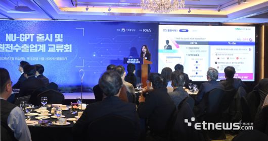NU-GPT 출시 및 원전수출업계 교류회가 산업통상부 주최로 15일 서울 중구 롯데호텔에서 열렸다. 산업부 담당자가 NU-GPT에 대한 설명을 하고 있다.