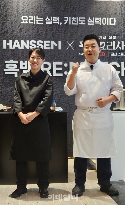 종합 홈 인테리어 기업 한샘(009240)이 마련한 ‘흑백요리사 RE:MATCH’는 공식 스페셜 파트너로 참여한 프로그램 협업의 연장선에서 기획됐다. 한샘 플래그십 논현점에는 두 셰프의 요리 대결을 지켜보기 위해 인플루언서와 일반 참가자들을 비롯한 관계자들로 가득 찼다.