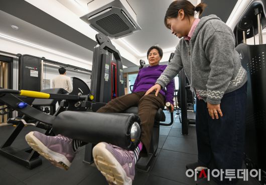 15일 서울 동작구 상도동 두덕빌딩에 개소한 '장애인 전용 헬스장'을 찾은 이용자들이 체육지도사의 지도를 받으며 운동하고 있다. 동작구는 관내 장애인의 건강 증진과 체력 향상을 위해 서울시 자치구 최초로 '장애인 전용 헬스장'을 개소했다. 러닝머신·사이클 등 다양한 운동기구를 갖추고 있으며 전문 강사가 상주해 장애 유형 및 정도를 고려해 맞춤형 프로그램으로 보다 안전하고 체계적으로 운동할 수 있도록 지원한다. 동작구에 거주하는 등록 장애인이라면 누구나 무료로 이용할 수 있다. /정재훈 기자 |