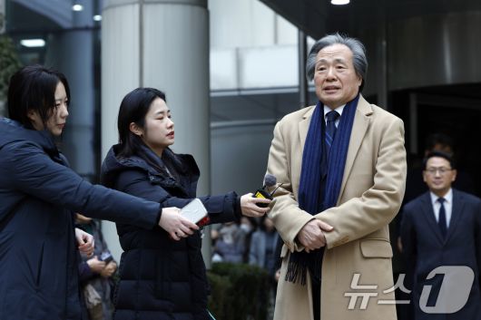 (서울=뉴스1) 박정호 기자 = 정기석 국민건강보험공단 이사장이 15일 오후 서울 서초동 서울고등법원 앞에서 주식회사 케이티앤지 외 3명 손해배상 청구 2심 선고 공판을 마친 뒤 나와 입장을 표명하고 있다. 2026.1.15/뉴스1