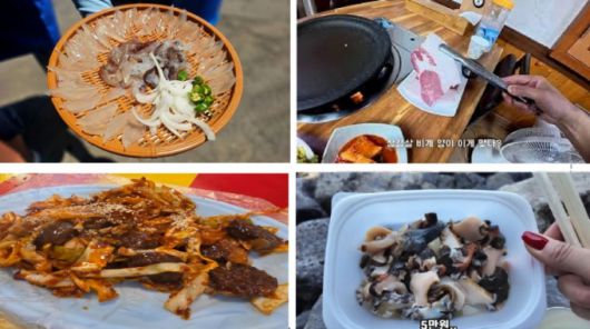 지난해 국내여행객들이 바가지 피해를 입었다고 주장해 논란이 인 사례들. 오른쪽 상단부터 시계 방향으로 울릉도 비계 삼겹살, 제주도 해산물, 제주 순대볶음, 속초 오징어. / 사진 = 유튜브, 온라인 커뮤니티, 속초시청 |