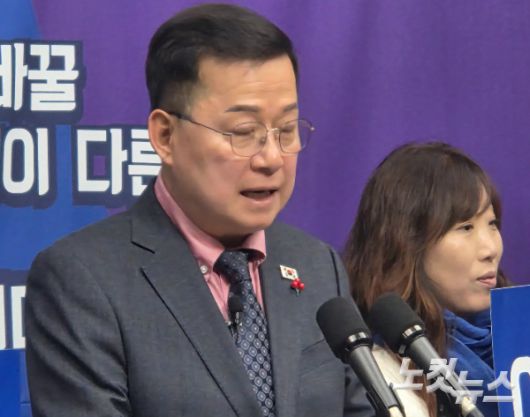 심보균 전 행정안전부 차관이 15일 전북도의회에서 익산시장 출마를 선언하고 있다. 최명국 기자 |