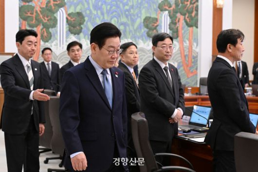 이재명 대통령이 15일 청와대에서 열린 수석비서관회의를 주재하기 위해 자리로 향하고 있다. 김창길 기자 |