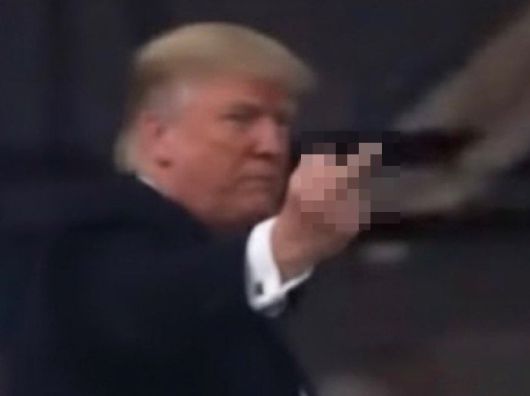 트럼프 대통령이 가운뎃손가락을 펴 욕설 제스처를 하고, 입으로도 욕설을 하는 듯한 장면이 카메라에 담겼다./X(옛 트위터) |
